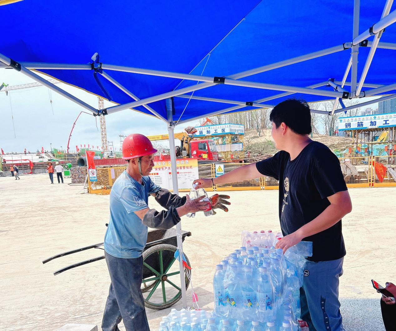 面對持續不斷的高溫天氣,做好后勤保障確保安全生產是項目建設的關鍵。建工三建組織開展“夏送清涼”活動,發放仁丹、綠豆、西瓜等防暑降溫物資,開展夏季防暑專項培訓,傳授夏季防暑基本知識、應急措施等。加強員工關愛,豐富員工業余生活,定期開展交心座談會,了解員工實際問題,解決員工實際困難,不斷提升員工幸福指數。