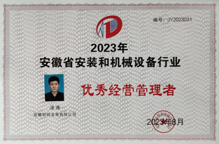 近日,安徽省安裝和機械設備協會對獲得2023年安徽省安裝工程優質獎、省建筑施工機械租賃企業綜合信用評價、優秀經營管理者、項目經理等單位和個人進行了表彰,建工三建涂濤和顧超分別榮獲“優秀經營管理者”和“優秀項目經理”榮譽稱號。