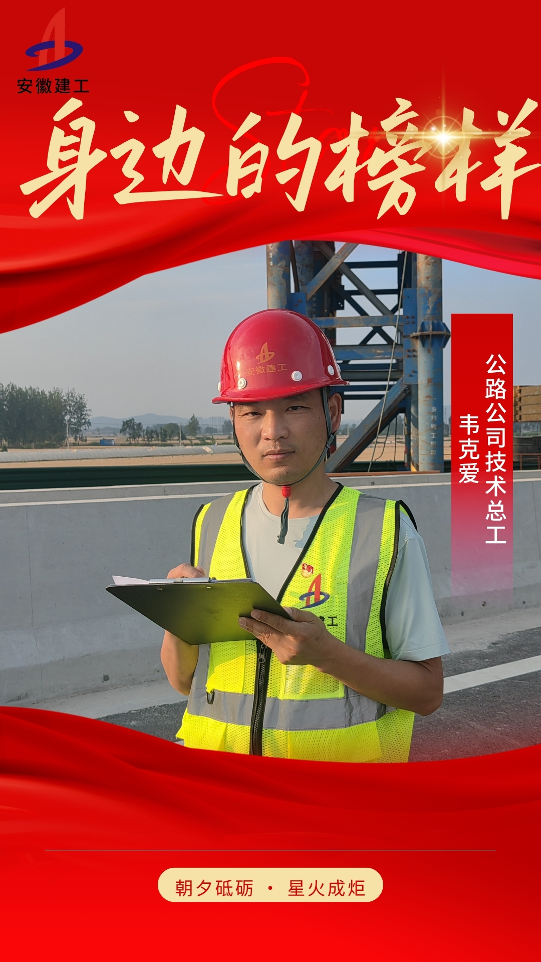 在城市建設的前沿陣地上,有一位用腳步丈量初心的共產黨員。他以建筑工地為人生舞臺,將責任擔當化作前行的風帆;以“逢山開路、遇水架橋”的鐵軍氣魄,在鋼筋水泥的交響曲中譜寫新時代建設者的奮斗史詩;以精益求精的工匠精神,鐫刻時代建設的精品豐碑,他就是公路公司技術總工韋克愛。